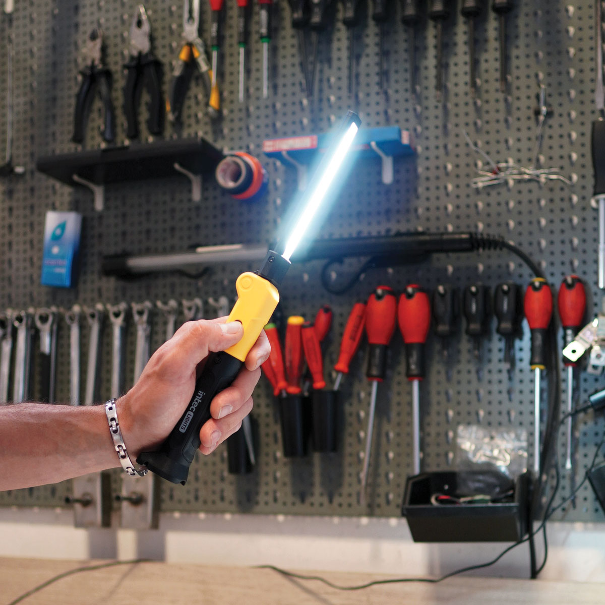 FOLD è una lampada da lavoro pieghevole progettata per offrire versatilità, autonomia e praticità in officina e in ambito professionale.