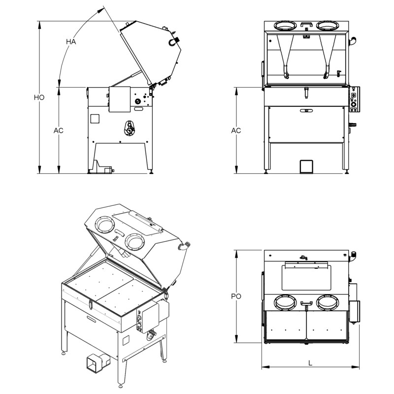 • Lavaggio manuale ad alta precisione tramite cabina chiusa con guanti integrati